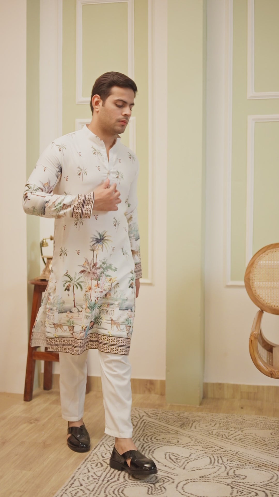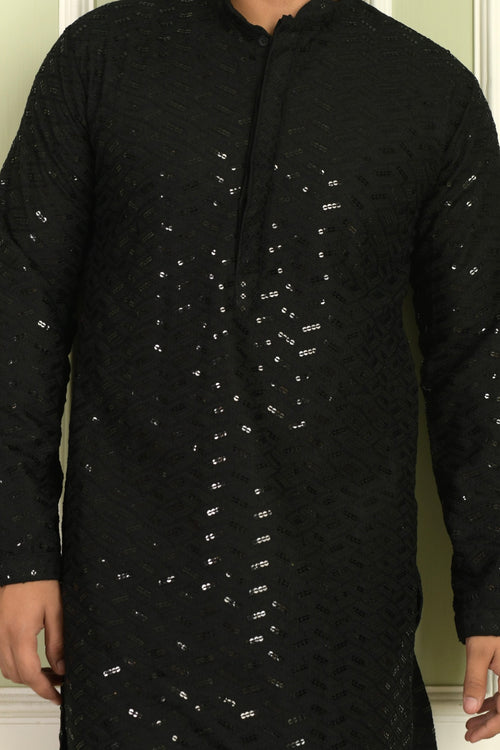 Chevron Embroidered Mandarin Collar Kurta With Pyjamas